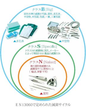 ヨーロッパ規格EN13060ではクラスB、クラスS、及びクラスNという3種類の滅菌サイクルのクラスがあります。