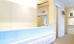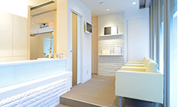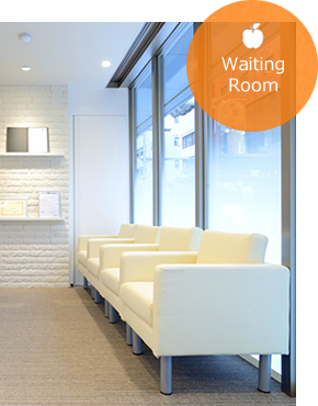 - 来院してすぐに受付を済ませられる作りになっています。受付後、スリッパに履き替えておくつろぎ下さい。