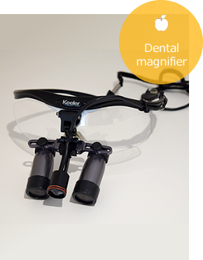 当院では歯科衛生士も同じ倍率の拡大鏡を使用し、同じ目線で治療・メンテナンスを行っております。