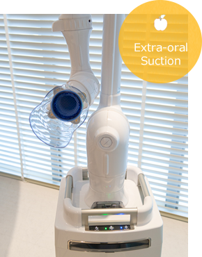 - 歯を削ったり「かぶせ物」の調整をする時に発生する歯の削りかす、金属片等の様々な細菌汚染物資を吸引し、患者さんの健康を守る医療機器です。